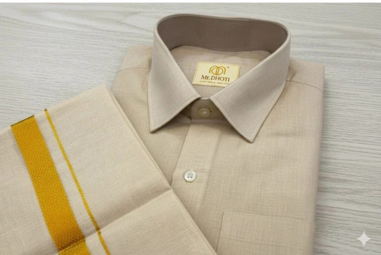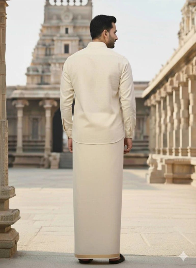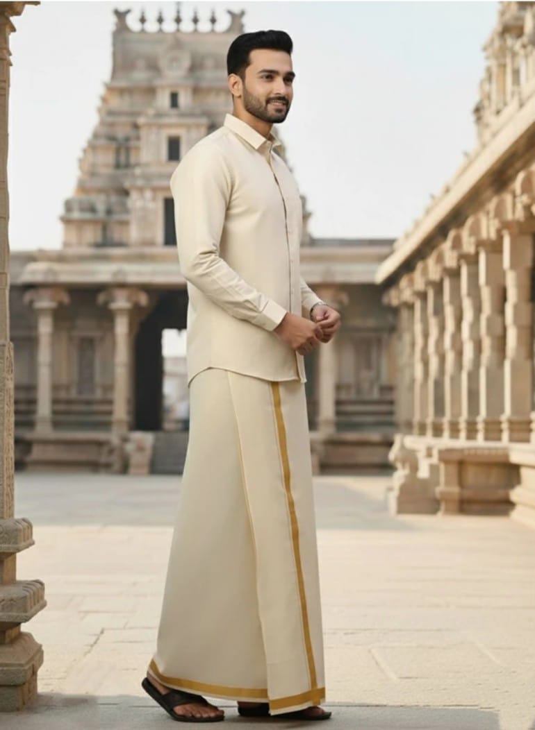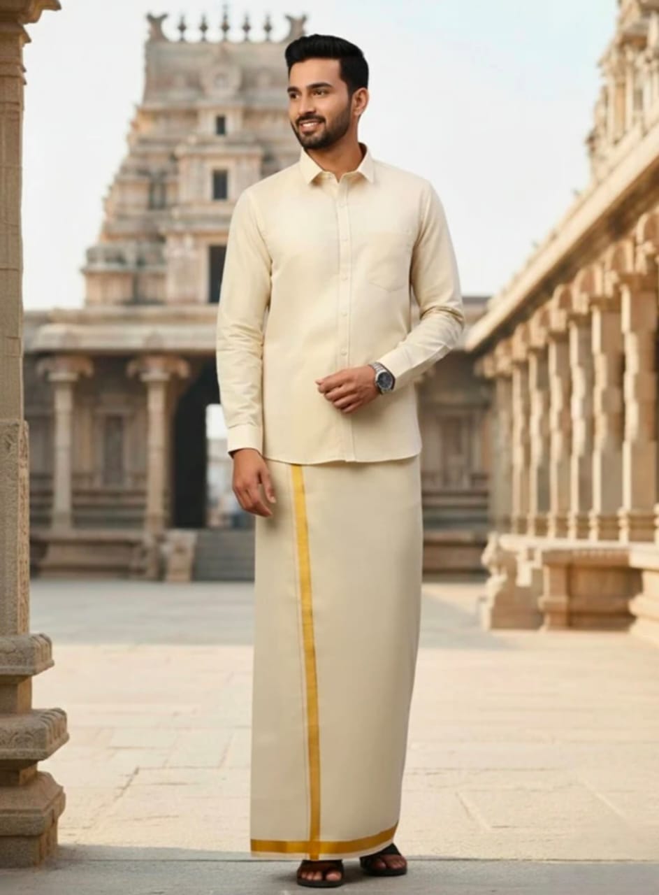 When paired together, the dhoti and silk shirt create a cohesive, high-impact traditional ensemble that showcases your cultural alignment while reinforcing your personal brand presence. This combo is ideal for weddings, festivals, professional cultural gatherings, or any moment where you want to deliver a polished, heritage-driven statement.